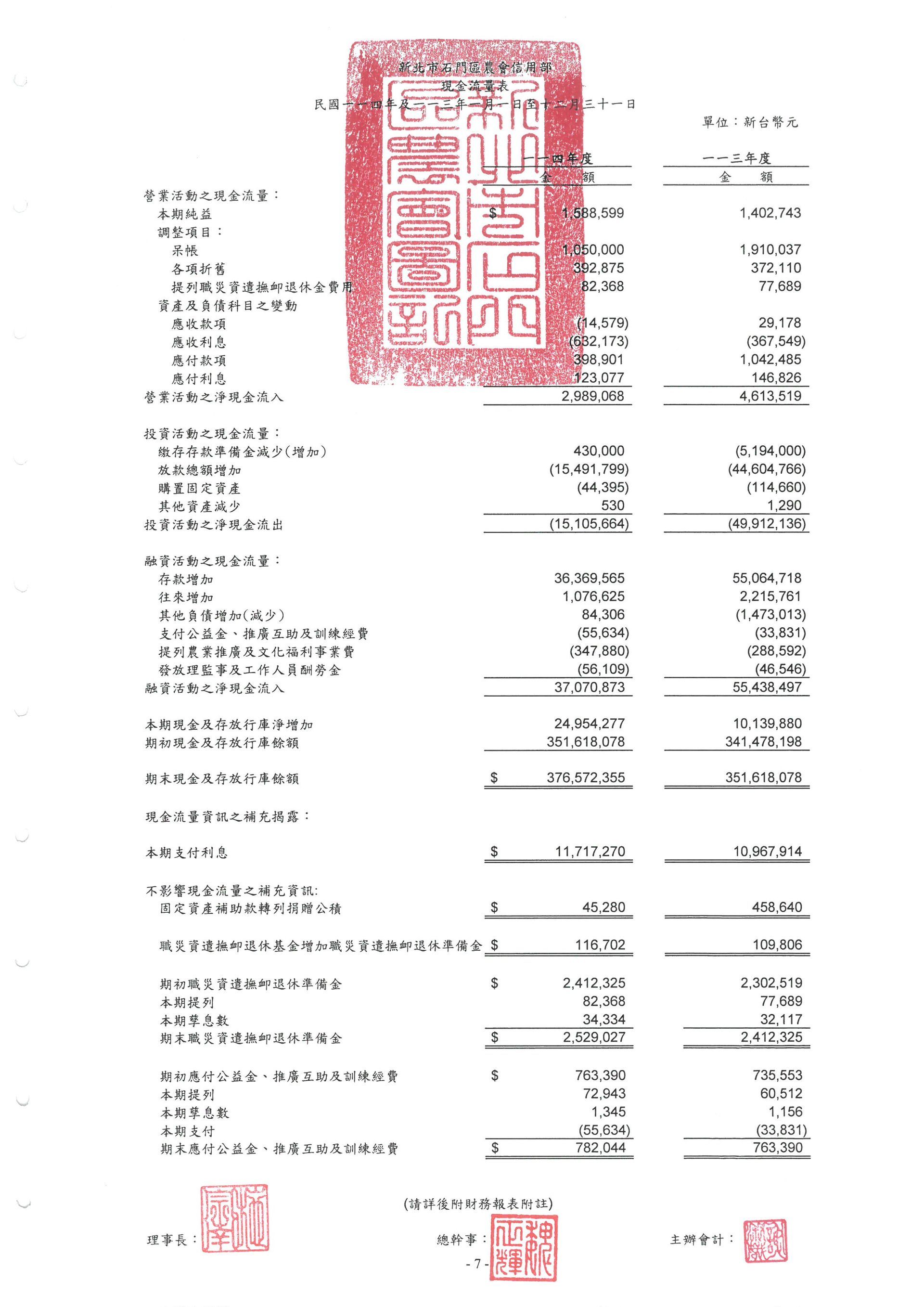 本會信用部已完成113年度財務資料公告,包含資產負債表、事業損益表、資金及公積撥補表,以及現金流量表,歡迎鄉親閱覽參考。